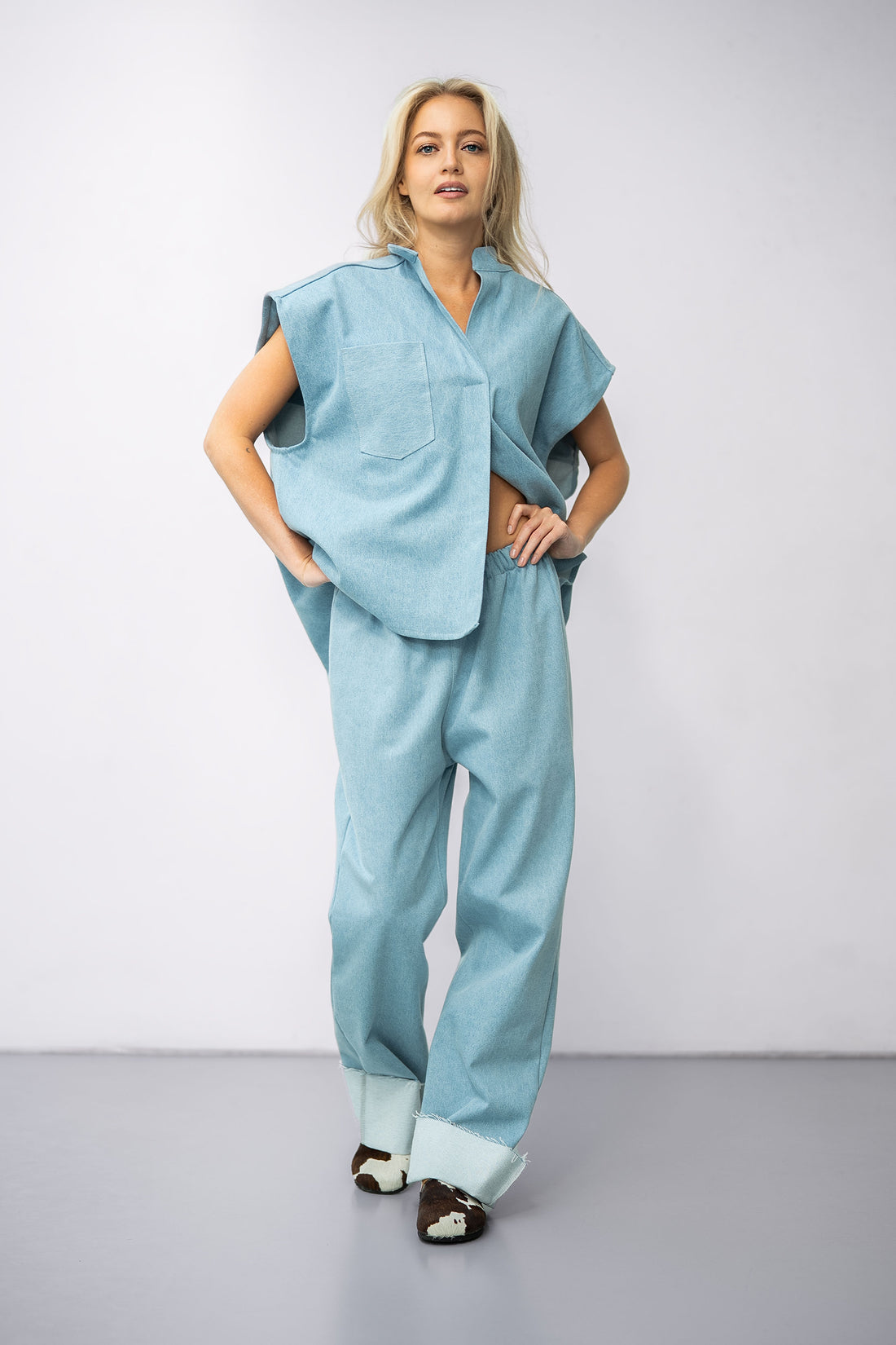 Denim Blouse Light Blue Onze handgemaakte Denim blouse is een must-have voor elke minimalistische garderobe. Deze...